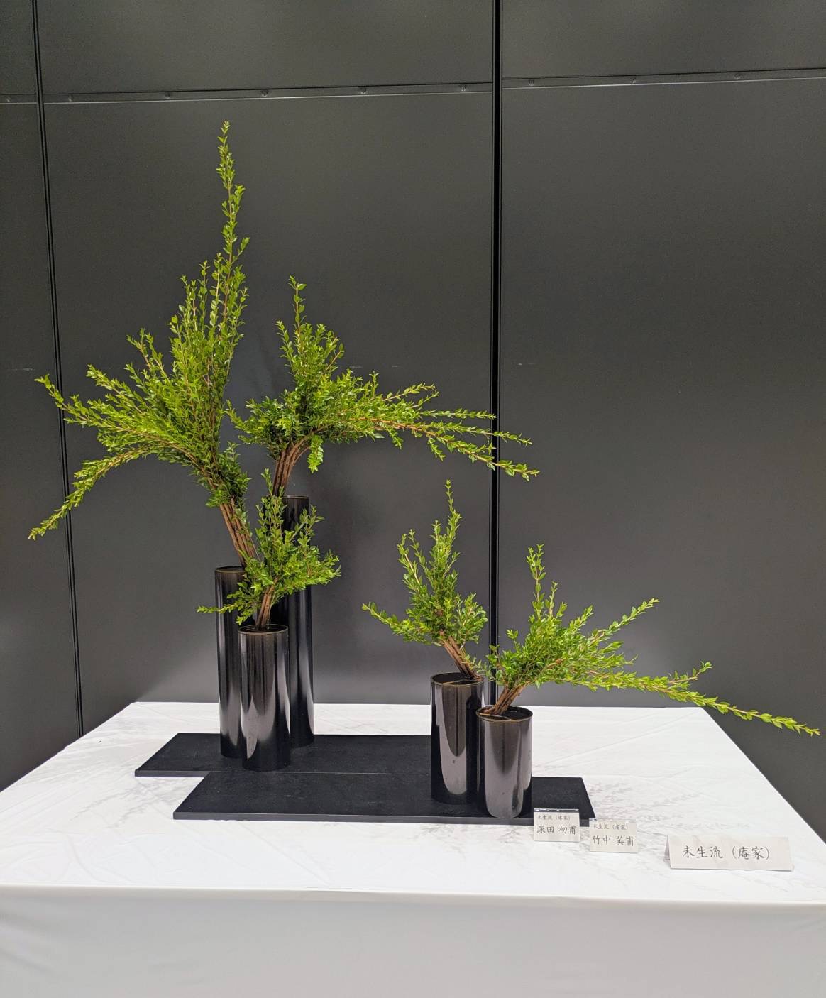 | 前期展 萩恭圃、弓場清圃、舩橋幸圃、橘陽圃、大濱和圃 | 後期展 家元顧問佐伯治甫、北山糸圃、金森あや圃、妹尾智圃、新矢玲圃 |